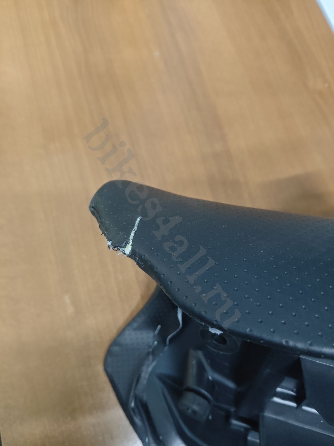 Седло для мотоцикла Yamaha YBR 125. Состав - пластик, поролон, экокожа. Слева спереди слегка надорвана перетяжка.