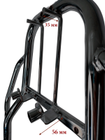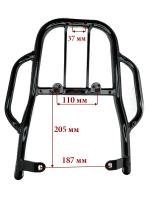 Крепится на стандартные места вместо задних слайдеров. Можно крепить любой стандартный мотоциклетный кофр. Цвет - черный. Размеры от самых крайних точек - 46х38 см. Размеры креплений указаны на фото. На всех багажниках этой партии присутствуют царапины, издержки транспортировки. Показано на фото. Цена указана с учетом этих дефектов.