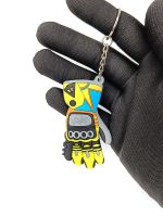 Брелок для ключей двусторонний Перчатки VR46. Брелок силиконовый, двусторонний. Цвет черно-желтый. Подойдет в качестве брелока для ключей, подвески на зеркало авто или на рюкзак