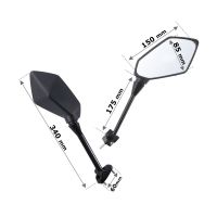 Зеркала заднего вида для мотоцикла. В комплекте 2 зеркала с креплениями. Межболтовое расстояние регулируемое - от 30 до 40 мм Масса брутто 670 г Размер в упаковке 35-11-7 см Подходят на мотоцкиклы: