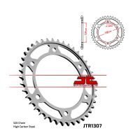 Задняя звезда JTR1307.46 изготовлена из высококачественной стали европейского производства. JT - ведущий европейский производитель звезд для мотоциклов во всем мире, чьи звезды отличаются надежностью и долговечностью и оптимальным соотношением между ценой и качеством. Задняя звезда JTR1307.46 является стоковой ведомой звездой на мотоциклы: