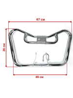 Данные защитные дуги для YBR 125 выполнены из прочтого металла. В случае падения мотоцикла помогут защитить детали байка, а также ноги мотоциклиста. Подходят на все модификации YBR 125, но в некоторых случаях возможно, потребуется перенести рожок сигнала и закрепить рядом. Просты в установке. Ширина дуг в самой широкой части - 67 см. (не превышают габариты мотоцикла) Также у нас вы можете купить дуги защитные YBR 125 вид 1 Цвет: Хром