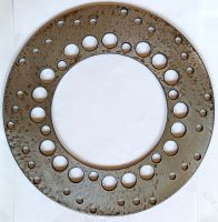 Передний тормозной диск для мотоцикла Yamaha YBR 125. Тормозной диск для мотоциклов Yamaha YBR 125 старого образца (2004-2008) имеет 6 крепежных отверстий. Товар новый, в эксплуатации не был. Причина уценки - не товарный вид, показано на фото.
