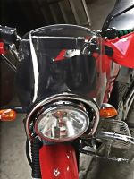 Ветровое стекло с бугелем для круглой фары Yamaha YBR 125. Лобовое стекло прочное, крепится к бугелю в трёх местах. Заметно улучшает обтекаемость мотоцикла с установленной круглой фарой.